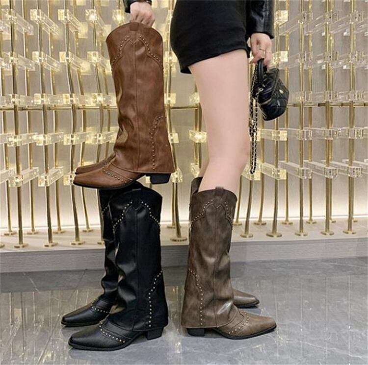 西部カウボーイブーツ レトロ スパイク ラフ ロングブーツ