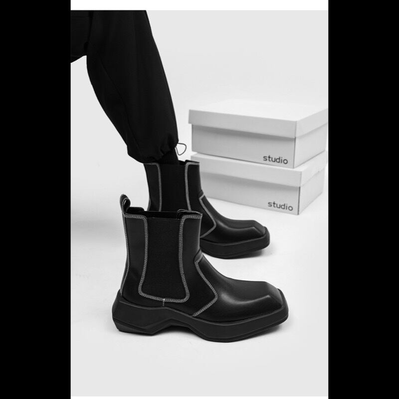 都会的でおしゃれなショートブーツ、それがこのブーツです。高級感のあるPUフェイクレザーを使用し、しっかりとした作りで仕上げました。チェルシーブーツやチャッカブーツとしてもお使いいただけるので、多彩なスタイリングが可能です。