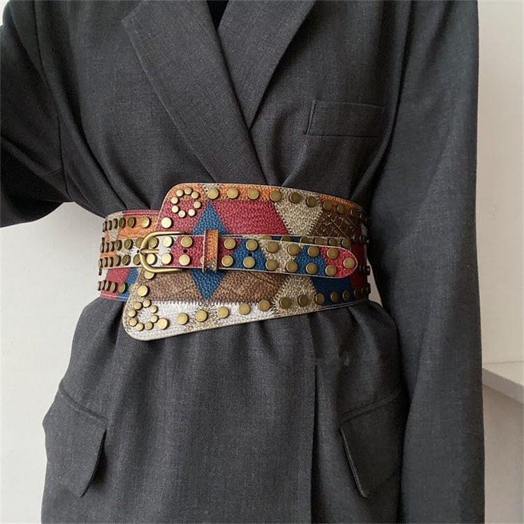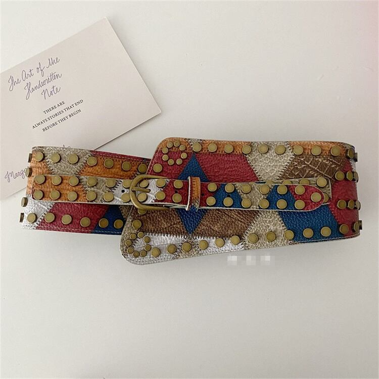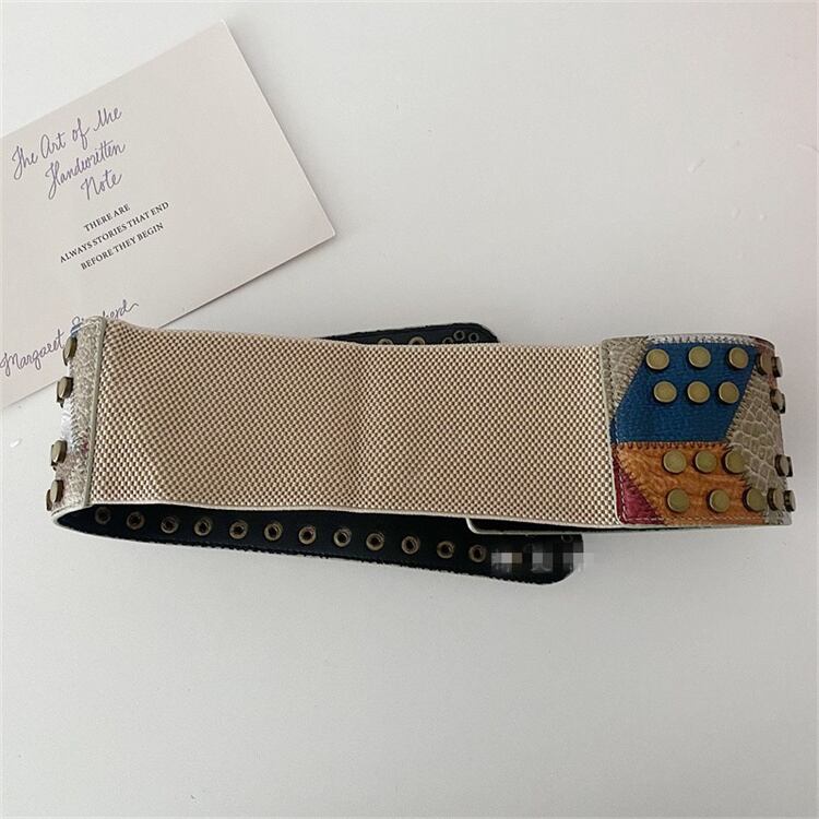 個性的なデザイン ベルト 欧米風 レトロ 鋲 トレンド 弾力 ストレッチベルト 腰封 装飾 ワイドベルト